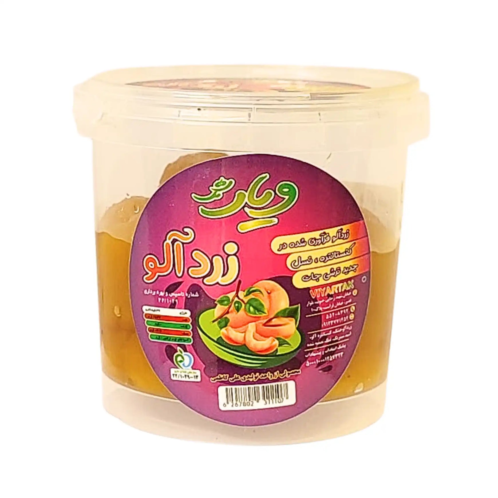Aprikos Fruktläder Viyartak i burk, 100g, är en traditionell Iransk sur godis. Denna läckerhet är tillverkad av torkade plommon och har en intensiv och syrlig smak som är en fröjd för smaklökarna. Perfekt som ett mellanmål eller som ett tilltugg när som helst på dagen, detta fruktläder tillfredsställer både söt- och sura smaker och bjuder på en autentisk smakupplevelse från Mellanöstern.