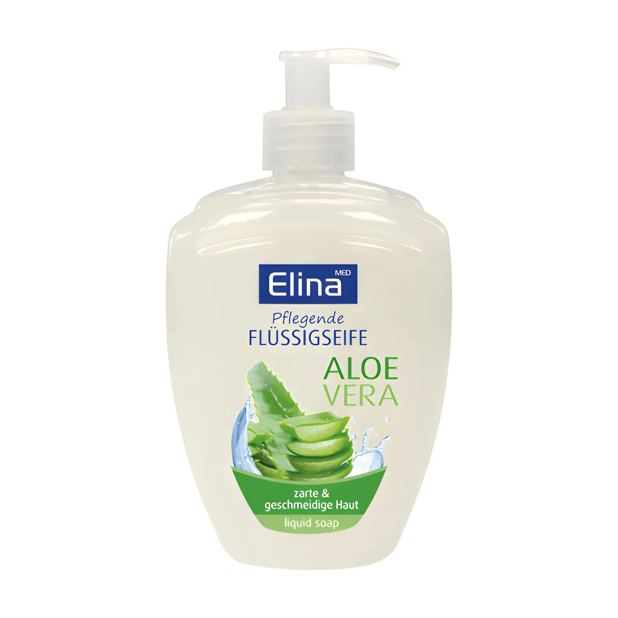 Elina Aloe Vera flytande tvål i 500ml pumpflaska är en berikande och återfuktande lösning för daglig handhygien. Den speciella formuleringen med Aloe Vera ger inte bara effektiv rengöring utan ger även en mild och vårdande känsla.