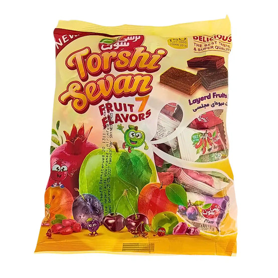 Sevan Blandade Fruktläder Lavashak 500g är en smakrik och naturlig delikatess från Iran, gjord av torkad frukt i form av tunna, sega ark. Lavashak har en lång tradition i iransk matkultur och framställs genom att pressa och torka fruktpuré, vilket ger en intensiv fruktig smak med en perfekt balans mellan sötma och syrlighet. Denna blandade version erbjuder en variation av fruktsmaker, vilket gör det till ett spännande och hälsosamt mellanmål. Sevan Lavashak är ett naturligt alternativ till godis och passar både barn och vuxna. Förpackningen på 500g är perfekt för att dela med familj och vänner.