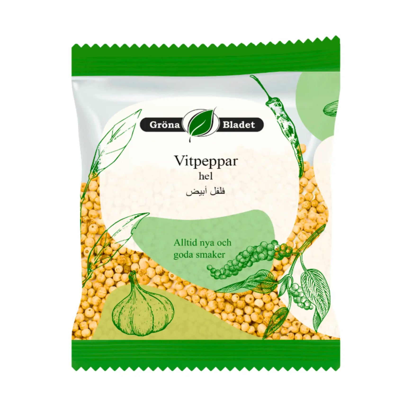 Gröna Bladet Vitpeppar, Hel 30g – för dig som vill ge dina maträtter en exklusiv och balanserad krydda. Med sin milda och distinkta smak är denna vitpeppar det perfekta valet för att förhöja dina hemlagade favoriter och ge dem den rätta touchen!