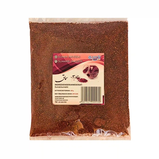 Sumak Pulver Påse Sedir 100g – Ge dina rätter en autentisk smakupplevelse! Sumak är en klassisk orientalisk krydda med frisk, syrlig och fruktig smak som påminner om citron men med en djupare karaktär. Perfekt till sallader, grillat kött, kebab, fisk, marinader och meze. Kryddan är en favorit i Mellanöstern och Medelhavsköket och lyfter smaken på allt från enkla vardagsrätter till festmåltider.